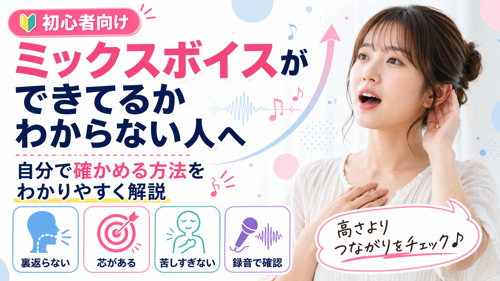 この記事では、ミックスボイスができているかを見るポイントと、勘違いしやすいパターンを、できるだけやさしく整理していきます。
